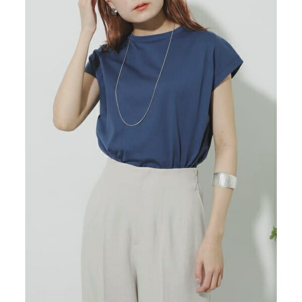 シンプルながらも、「フレンチスリーブTシャツ」「スクエアトゥサンダル」などトレンドアイテムを合わせているため、今っぽいコーデに仕上がっています。