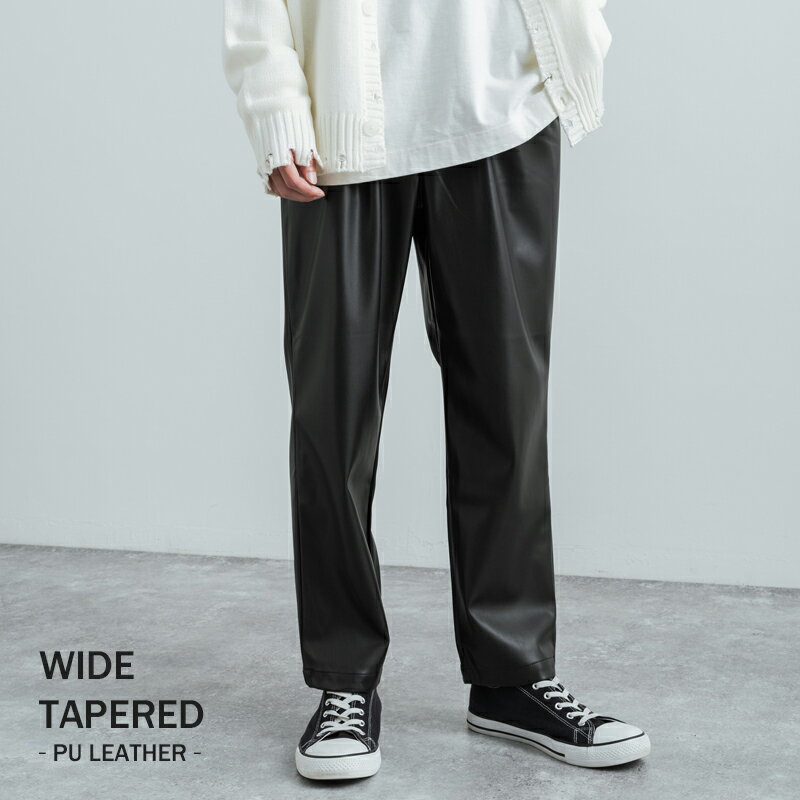 「フレア・スリット入り」のフェイクレザーパンツは、どうしても独特な雰囲気が出てしまうので、特に初めて履かれる方は、主流の「テーパード・ワイド」シルエットから始めるのが安心です。