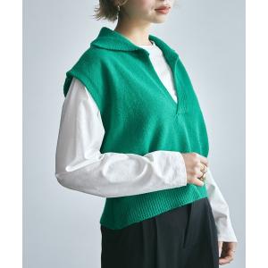 すでに「クルーネック」のニットベストをお持ちの方は、新鮮さのある「小襟・キーネック」デザインを選んでみるのもアリではないでしょうか。