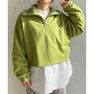 こちらのスウェットは、「ハーフジップ」に加え、トレンドの「ライトグリーン」「ショート丈(クロップド丈)」といった点も揃っていたので、今回ご紹介しました。